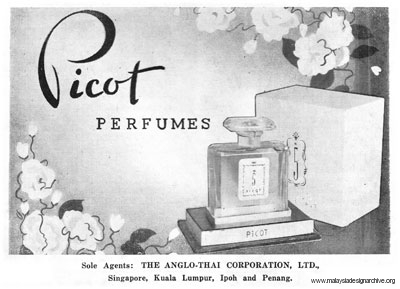 A Picot Perfumes ad published in 1954 'Filmalaya' magazine.