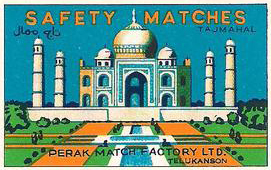 1936 Perak Match Factory. Based in Teluk Intan and started by a Bombay merchant A.G. Shaik. Only Malayan wood is used in the production of